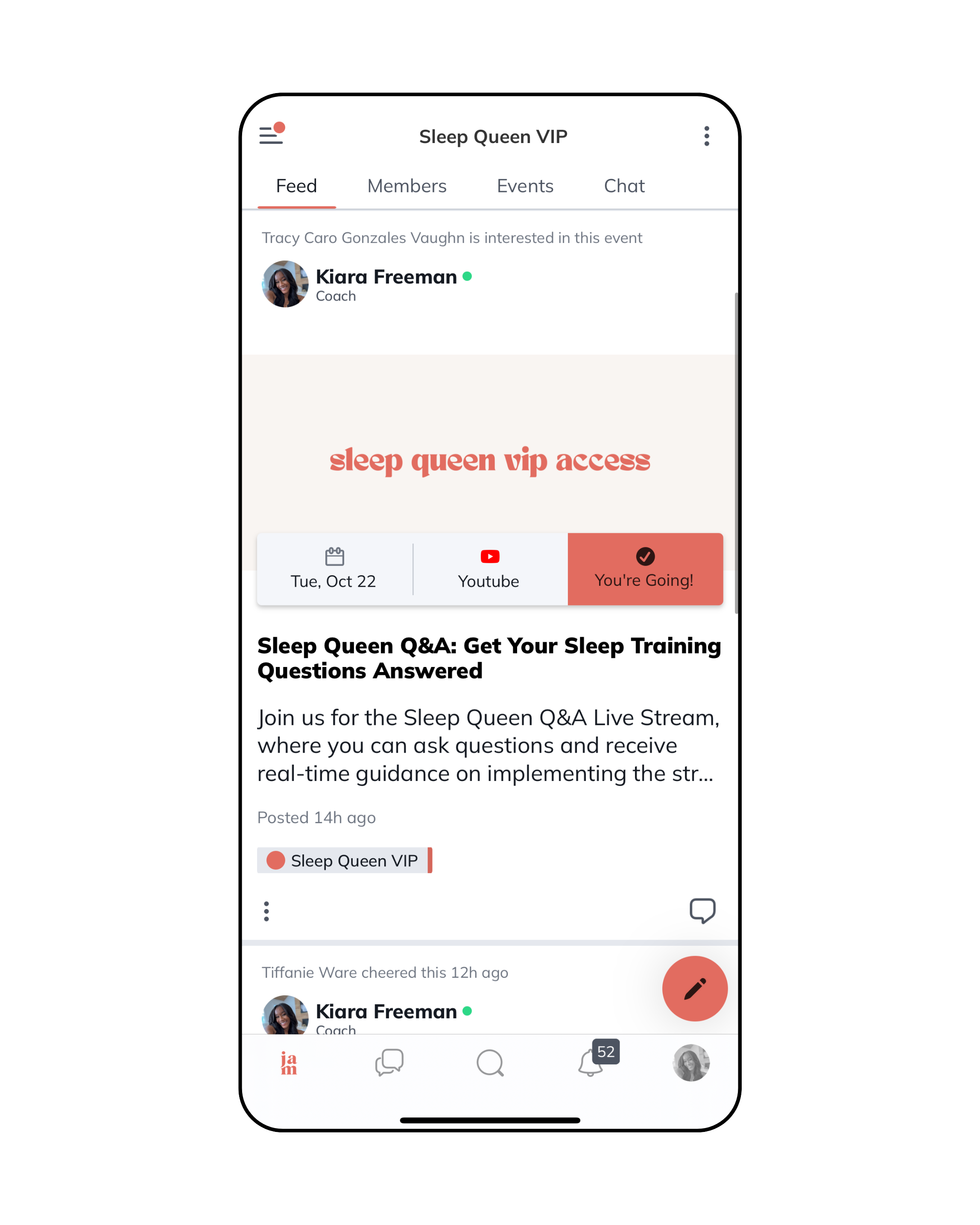 VIP Paid members get access to all community spaces, including discussions on fitness, relationships, self-care, homeschooling, and local meetups. You’ll also be able to participate in live-streamed discussions, receive event discounts, and access exclusive content. Try it out for 3 days free!